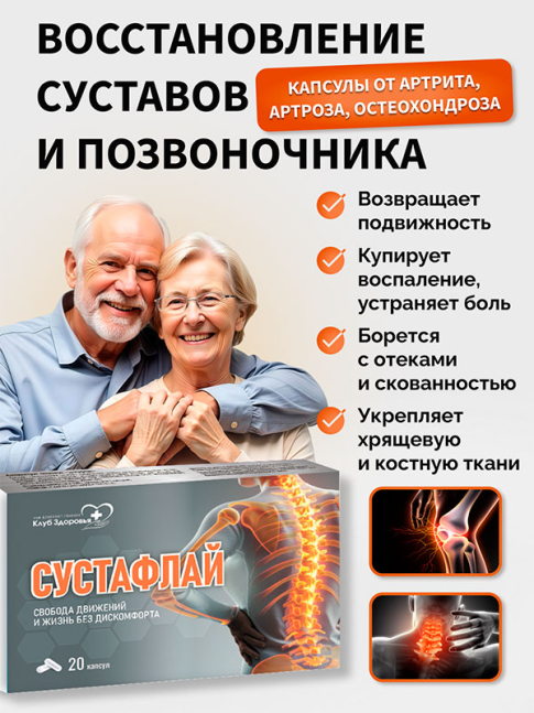 Подходит для комплексной поддержки суставов при возрастных и хронических изменениях.